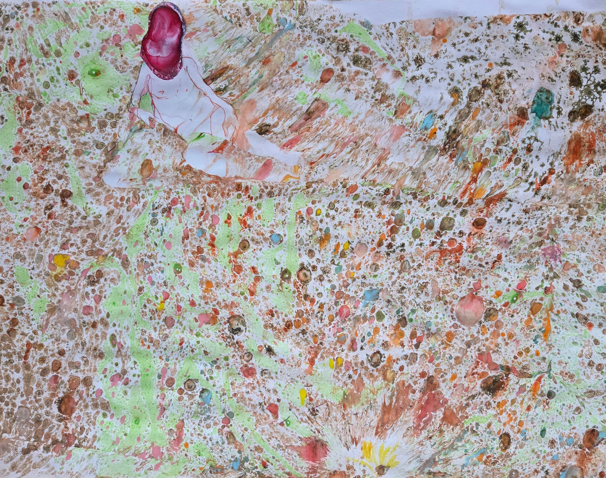 Collage et dessin sur papier marbré original Canson - 60x50cm