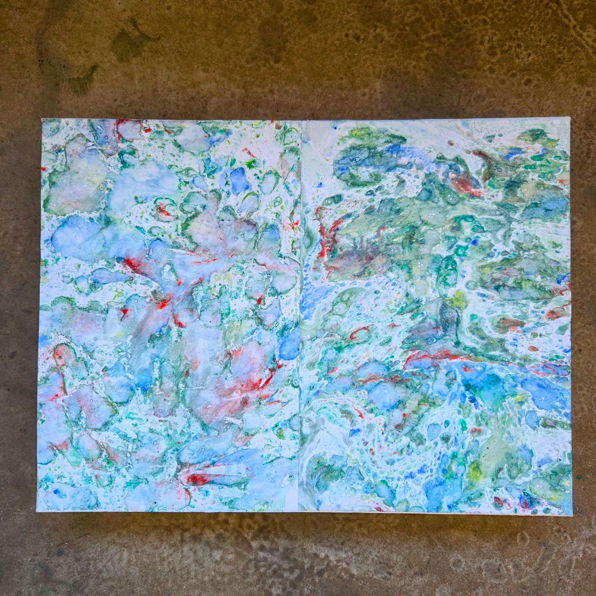 2 feuilles de papiers marbrées à l'huile originales, marouflées sur toile. Illustration de deux personnalités formant un couple proposée par l'artiste Hortense Garand Vernaison. Réalisée à Vallauris en 2025