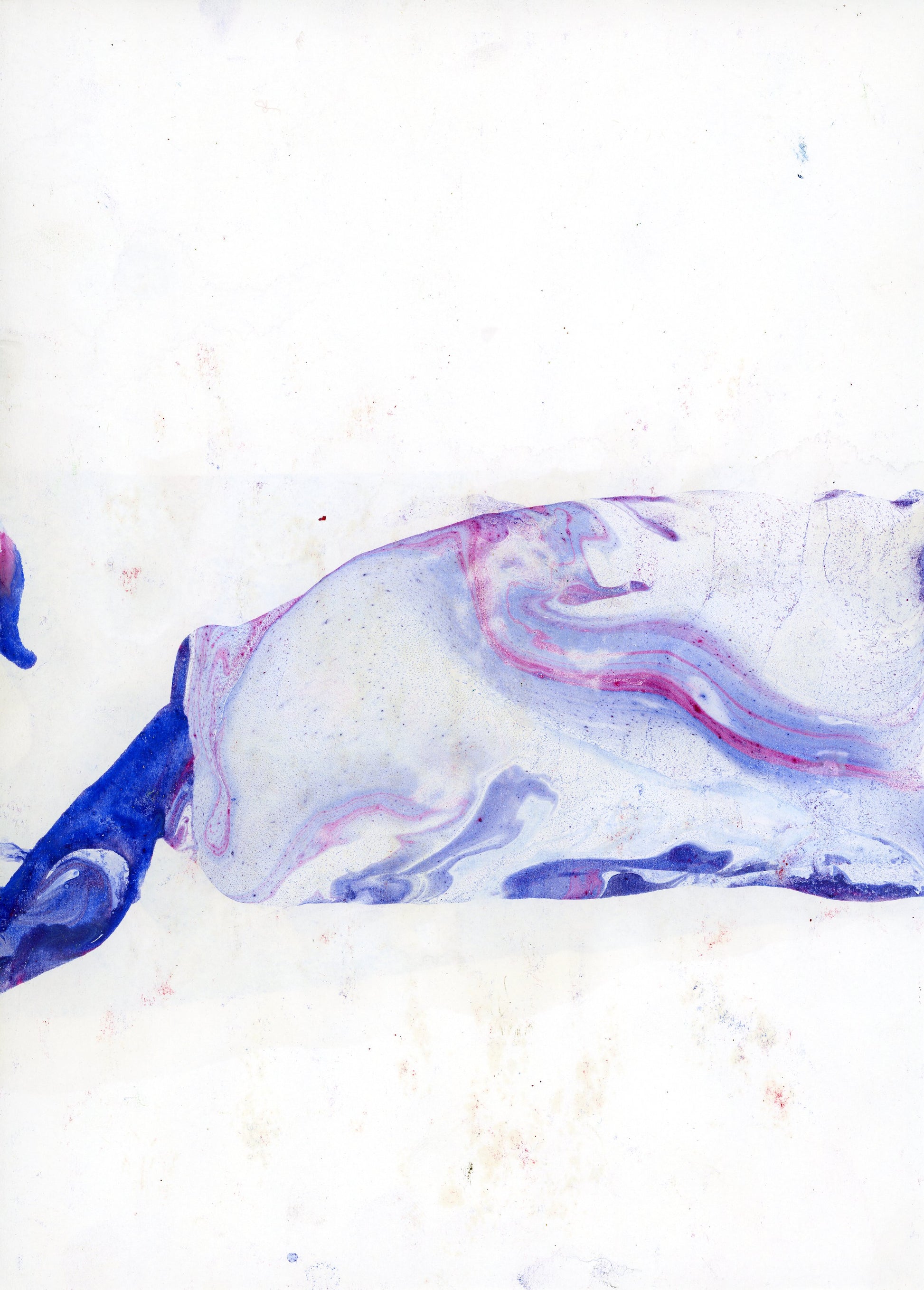 Impression dibond brilllant d'une planche originale de papier marbré à l'huile dans les tons Outremer, évoquant une bouteille d'encre renversée - format 30x40 cm.