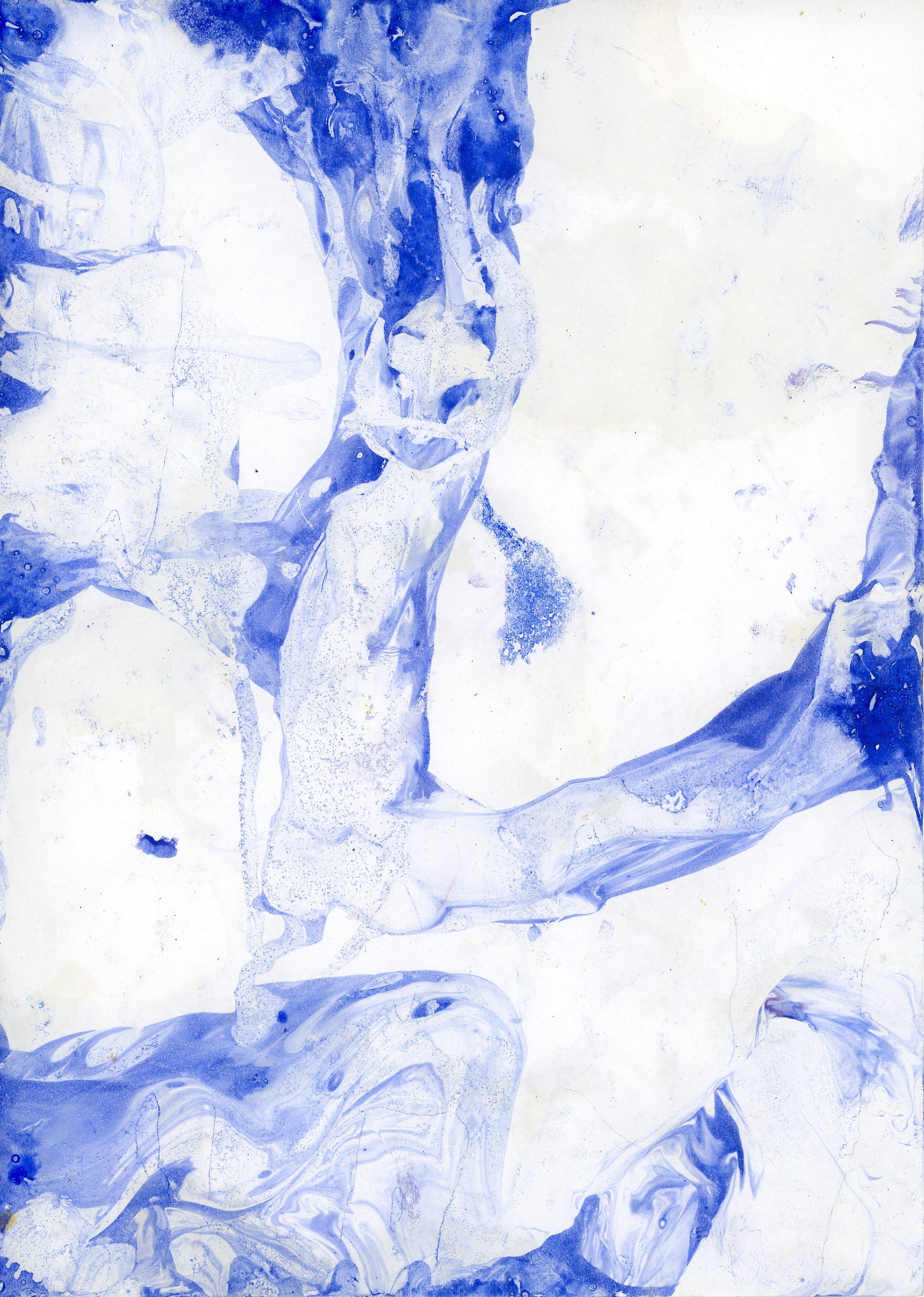 Impression dibond brillant 3mm d'une planche originale de papier marbré à l'huile dans les tons Outremer, évoquant un paysage de montage au travers des reflets de l'eau - format 30x40 cm.