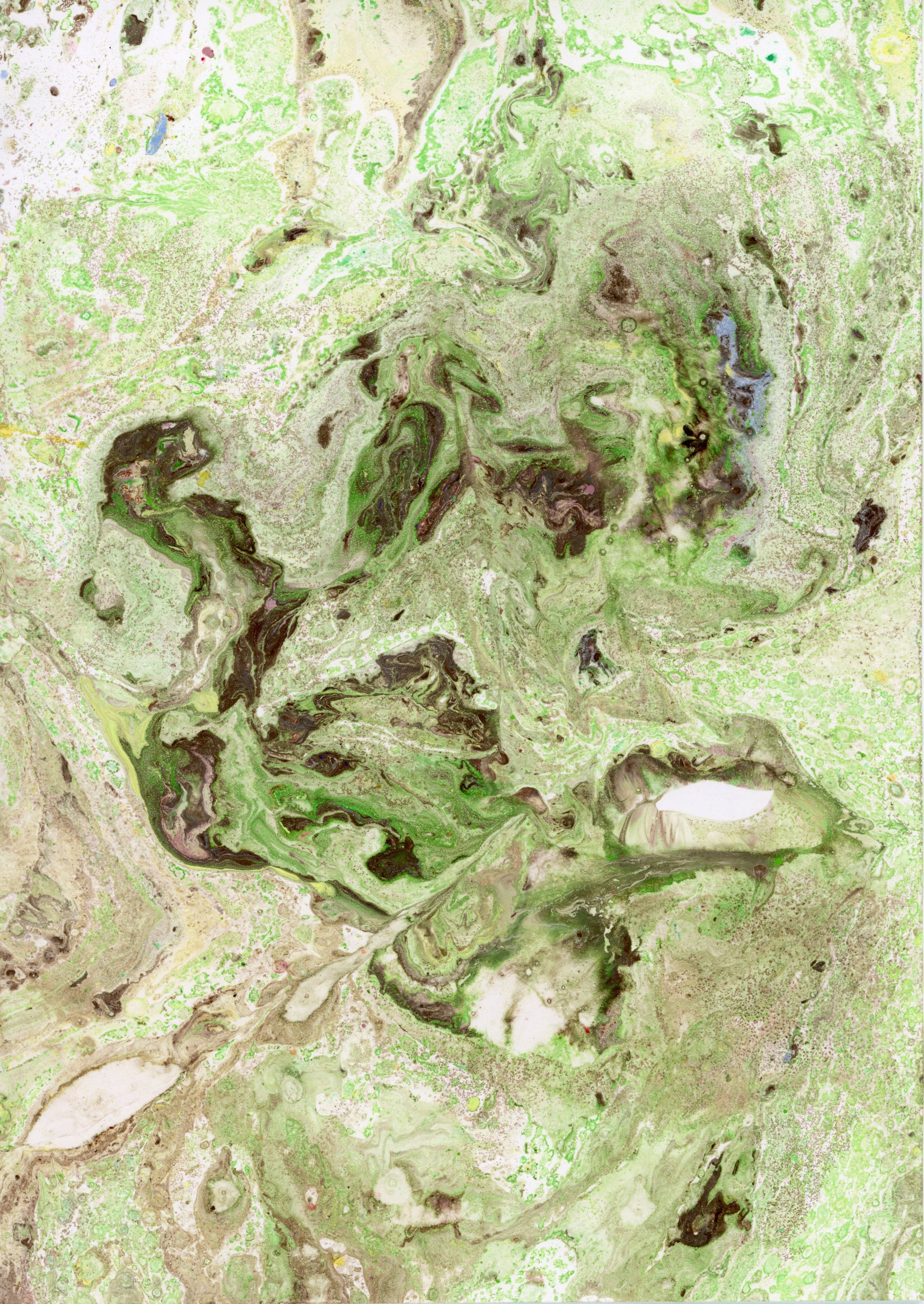 Reproduction d'un papier marbré à l'huile réalisé par l'artiste Hortense Garand Vernaison à Vallauris - tirage limité à 50 exemplaires. 2025.
